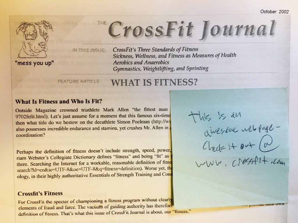 This is a photo of a care package I sent to my brother in Iraq in the autumn of 2003. I had recently discovered this website called crossfit.com that posted “workouts of the day”, which had totally transformed the way I worked out and prioritized my fitness goals. This was their entry-point article, the first place to start anyone on their CrossFit education, and I was trying to evangelize this to my brother serving in the US Army National Guard. Sadly, he died over there before he was able to open the package, but I made this CrossFit stuff a big part of my life.