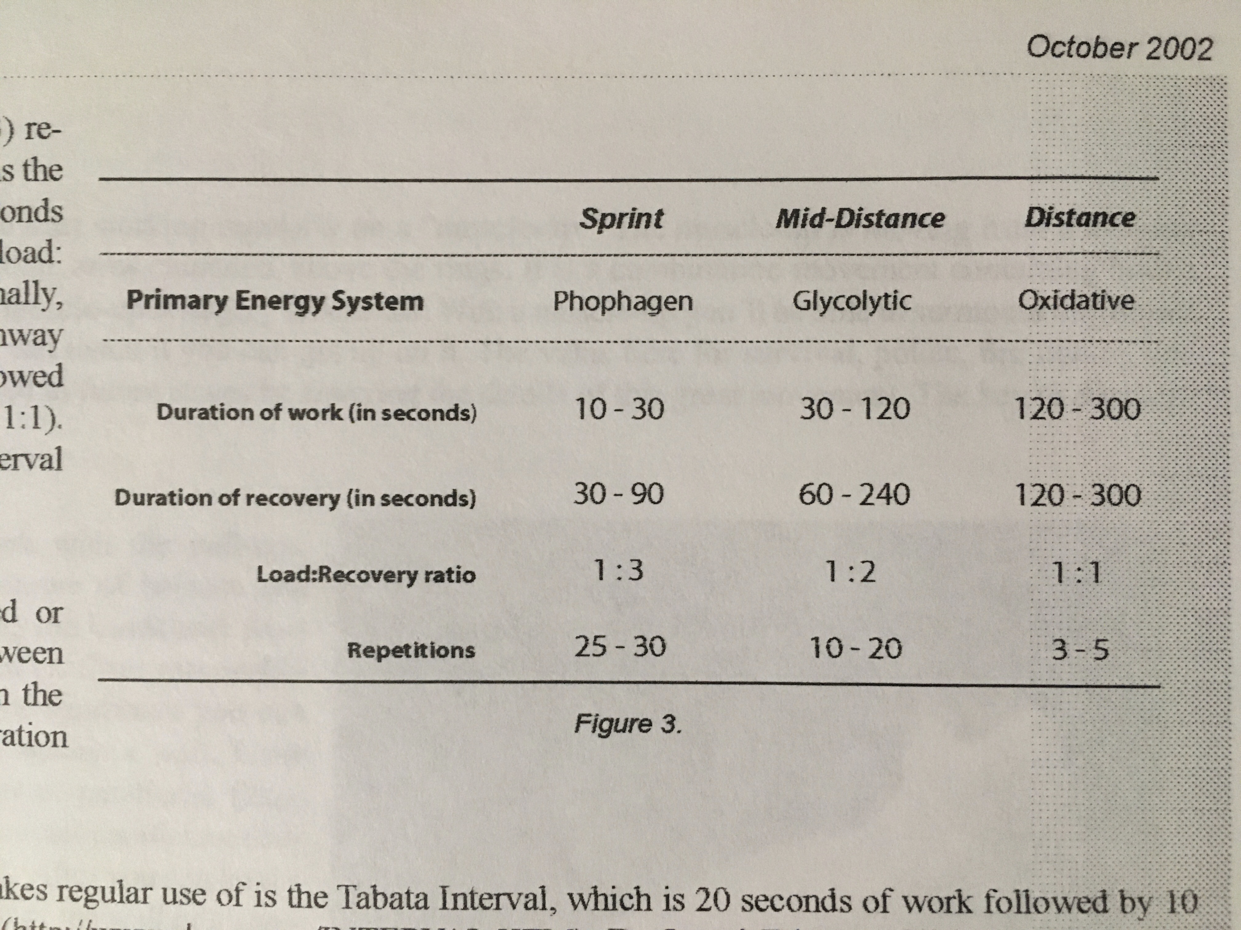 He provides a helpful chart of sprint interval work and rest protocols targeting all three energy systems. This is quite useful. He also, briefly, describes the Tabata interval, which I have a lot to say on and should probably write an entire blog article about. But, Tabata only gets two sentences in Greg’s article, so I’ll save that for another time.