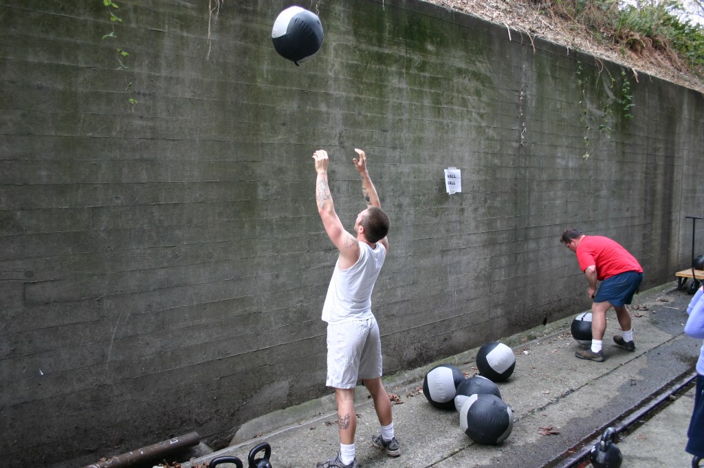 CrossFit was expensive, and we were both broke college students, but we started going to the hangar on the first Saturday of every month for an event Dave named “Suffer on Saturday”. This was the first CrossFit competition in the world. These monthly events gathered CrossFit athletes, their families, and friends from around the state of Washington (and sometimes Oregon) to compete in a friendly workout event as either an introduction to CrossFit, or a way to test our mettle against other seasoned practitioners. Sometimes the Suffer on Saturday workout would be one of the named “Girl WODs”, staples of CrossFit. Sometimes it would be something else entirely, something straight out of Dave’s creative mind, or something inspired by Greg Glassman’s injunction in his World Class Fitness in 100 Words to, “Regularly learn and play new sports”, like the Dragon Boat races we held on Lake Washington against the local Hawaiian Dragon Boat team, the obstacle course runs around Magnusson Park (years before Spartan races or Tough Mudders appeared on the scene), or the Hoover Ball tournament we held in the International District with Seattle’s Hoover Ball club. I won a t-shirt at one of these Suffer on Saturday events when I completed “Helen” (3 rounds for time of a 400m run, 21 kettlebell swings with a 53lb bell, and 12 pull-ups) in 6 minutes and 36 seconds, setting a world record that no one online remembers, and puking my guts out. But I remember, and so do all the people who were there.