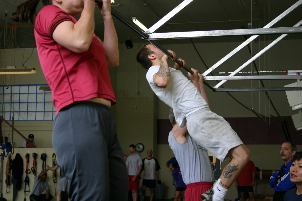 I won another CrossFit Challenge when Eugene Allen (another early CrossFit athlete, affiliate owner, educator, and Pierce County Sheriff’s Deputy) wanted to celebrate his 50th birthday by challenging everyone to do a set of 50 kipping pull-ups. His birthday coincided with the end of the 6-month challenge period, so it was a perfect test for the group. Again, I trained all 6 months for this, doing stupid amounts of kipping pull-ups at every opportunity. I often did them in sets of 40. Then, on Eugene’s birthday, at about 5am (before he started his shift as a Sheriff), I met him at his place—CrossFit Pierce County—along with another Deputy who’d been participating in the message board challenge. Eugene, at 50 years old, blew us away by doing all 50 kipping pull-ups in an unbroken set. The other Deputy did 52, and I smashed it out of the park with 56 unbroken kipping pull-ups. There were other people online who completed the feat that day, but I had the best total score and I won the Challenge.